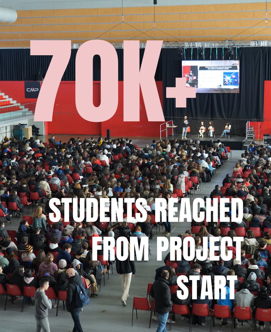 Da inizio progetto, oltre 70.00 studenti sono stati coinvolti nei nostri incontri di prevenzione al bullismo, cyberbullismo e violenza di genere.